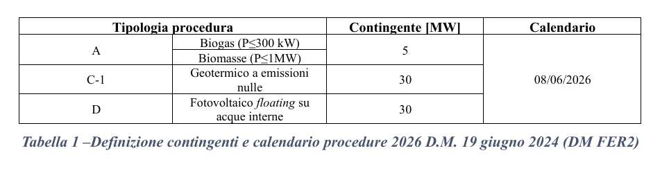 - 30 MW per fotovoltaico flottante su acque interne (procedura D).